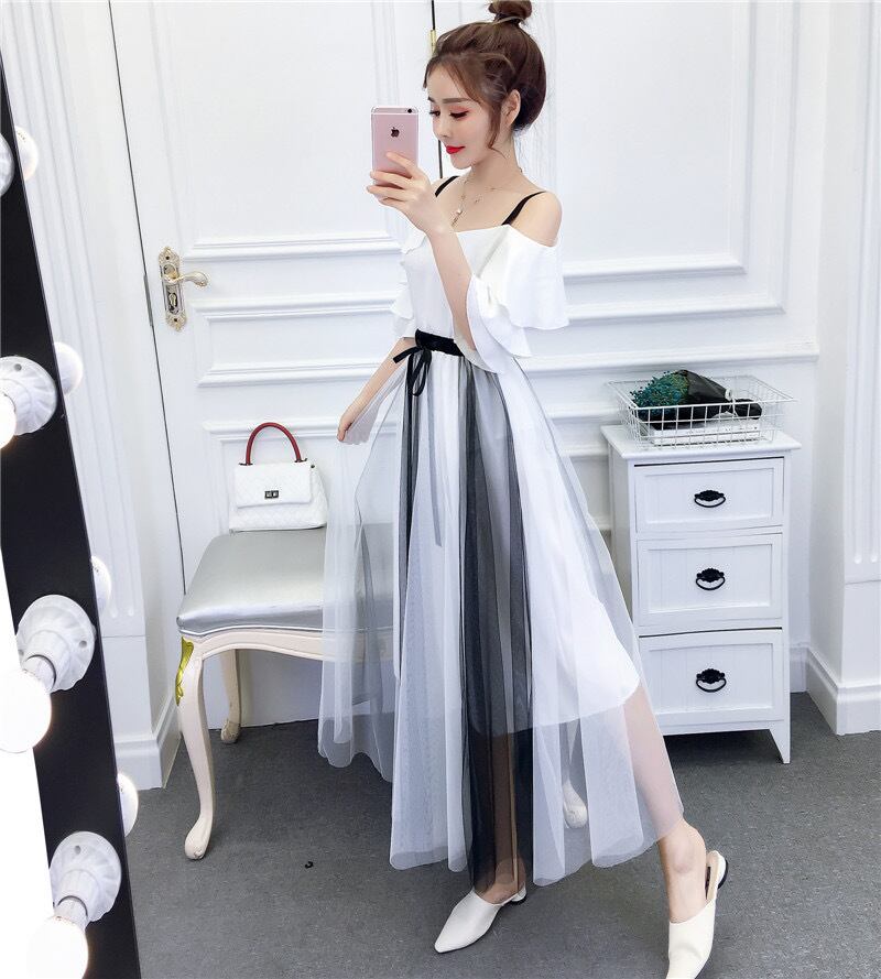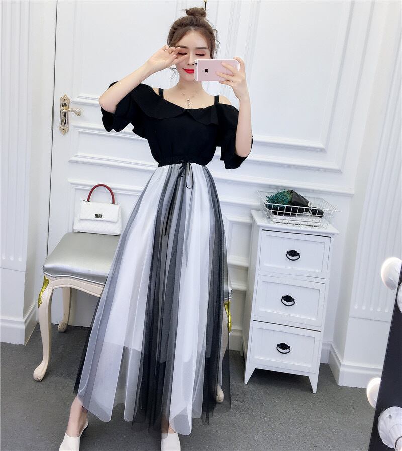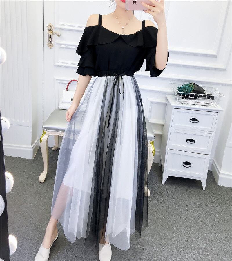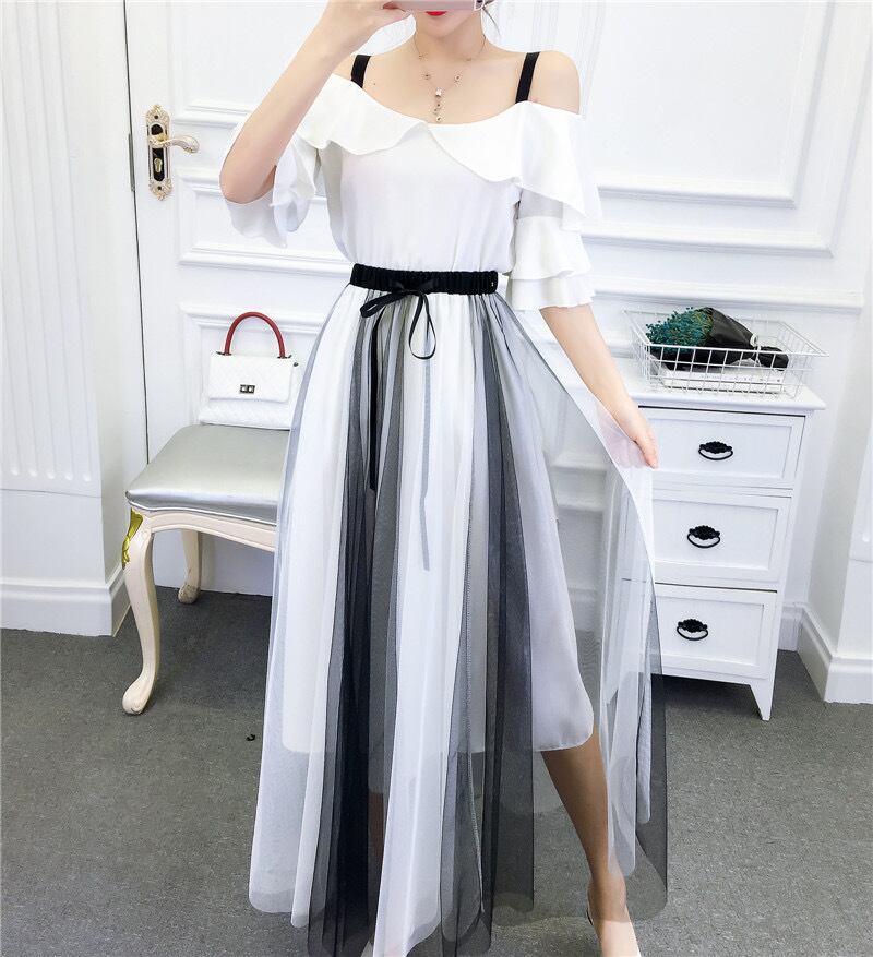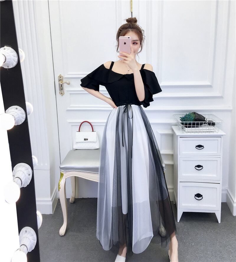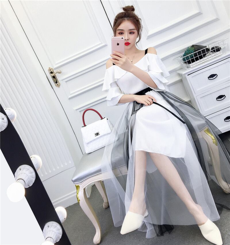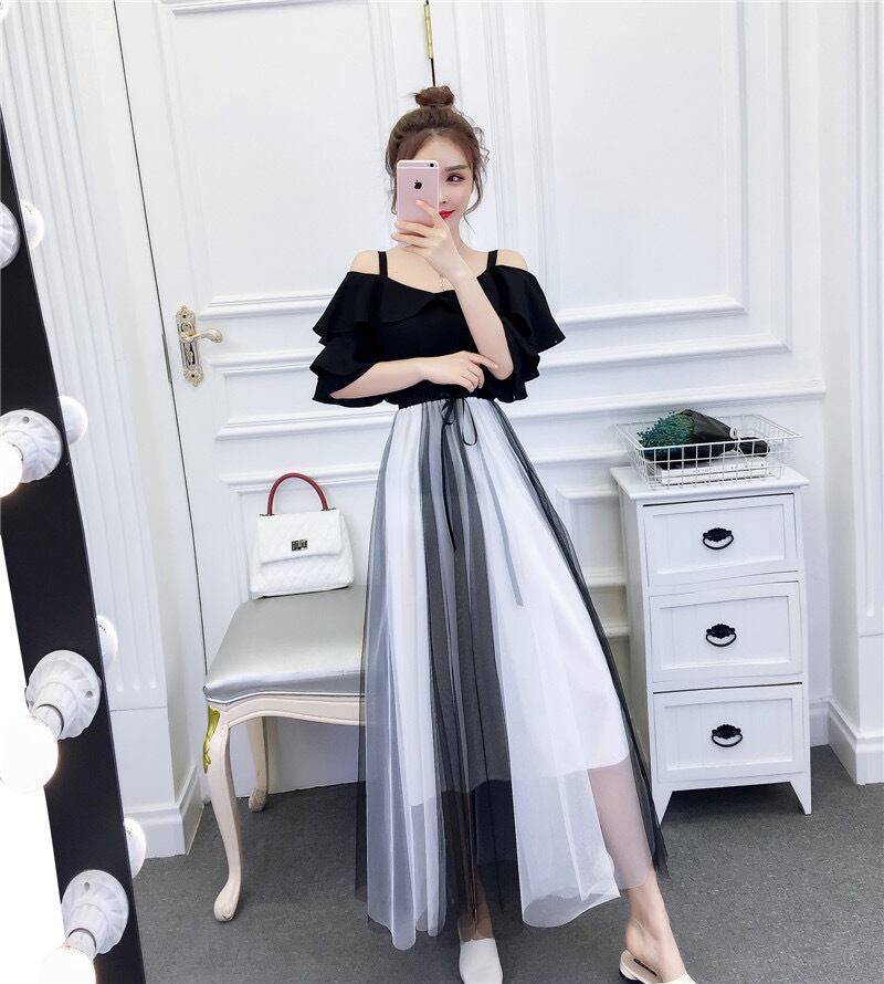 オフショルトップス シースルースカート セットアップ 2色展開